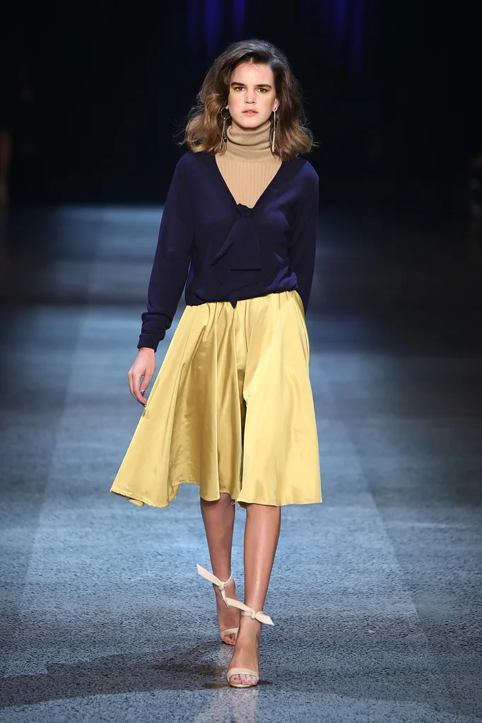 Hailwood does what he does best and that’s making clothes that are cut to flatter the female form perfectly. Sequins and metallics are always staples in his collections – this time wide leg trousers, fluted sleeves, capes and faux fur featured along with a nod to the late 60s in both design and hair and make up.