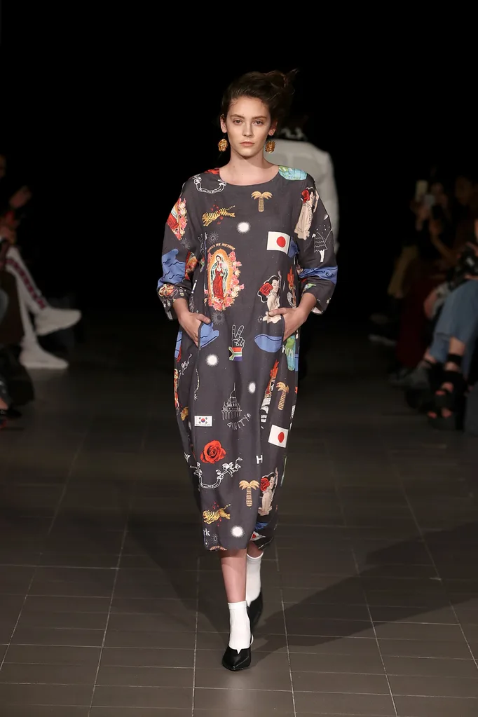 The New Generation show is always an exciting opportunity to see the fresh talent … Geoj played with sheer pieces covered in ruffles and leatherette with chain detailing. Luke Dawson’s The Boy From Goreville was menswear and womanswear pieces that were heavily skate influenced with drop crotches and illustrated graphics as a major theme.