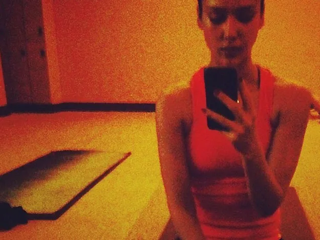 The gorgeous Jessica Alba shared this yoga selfie with the hashtags #hotyoga #selfie.