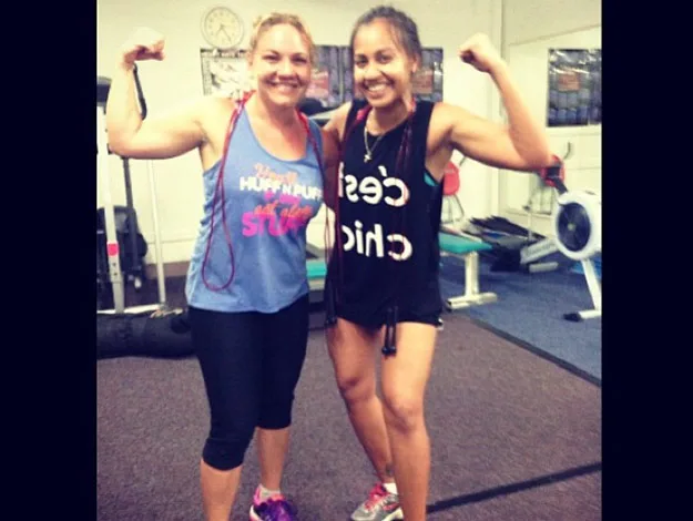 A toned-looking Jessica Mauboy shows off her muscles after an intense weights and leg workout.