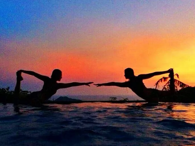 Wolf of Wall Street actress, Margot Robbie likes to do yoga to keep in shape. She posted this sunset yoga photo on instagram.