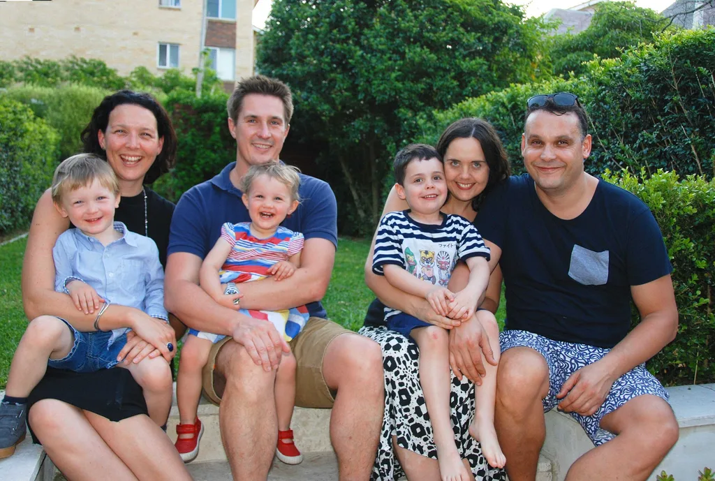 Daughter Anna with Flynn, son-in-law Andrew with Zara, daughter-in-law Chelsey with Otis and son Ben.