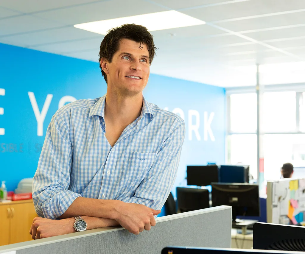 Sam Hazledine in his MedRecruit head office in Queenstown.