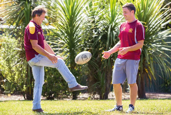 From day one, the Wardlaw family weren’t afraid to show their competitive spirit on Our First Home. Whether completing an ambitious renovation ahead of schedule or taking the top prize for one of host Goran Paladin’s regular “tasks”, their determination to rise to the challenge shone through. And what you see is exactly what you get, particularly when it comes to father Mick and son Tim, whose competitiveness extends beyond the limits of the TV screen to a sport they’ve both been heavily invested in – rugby league.