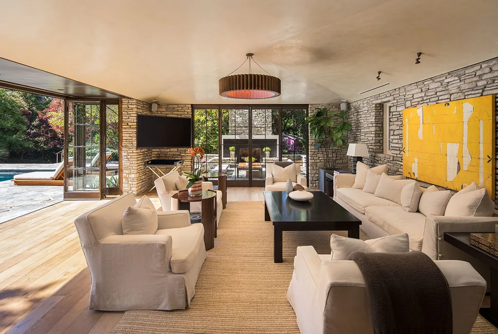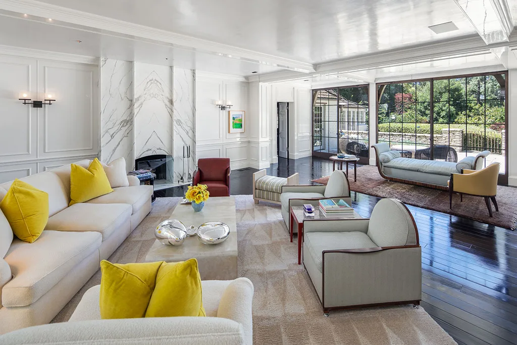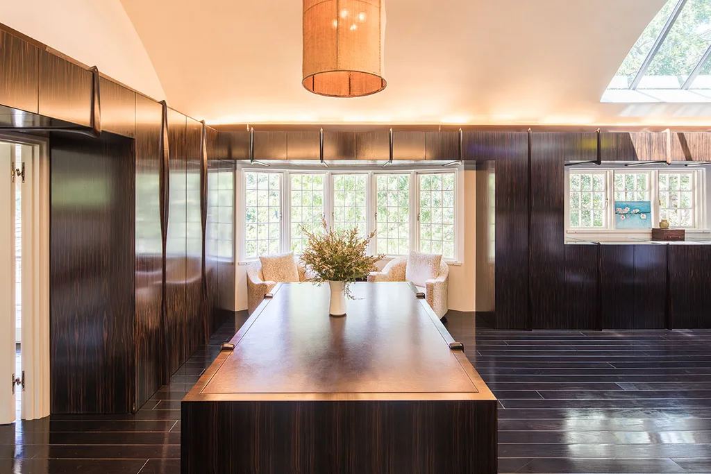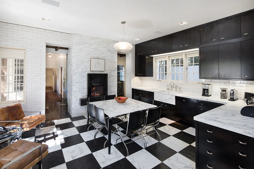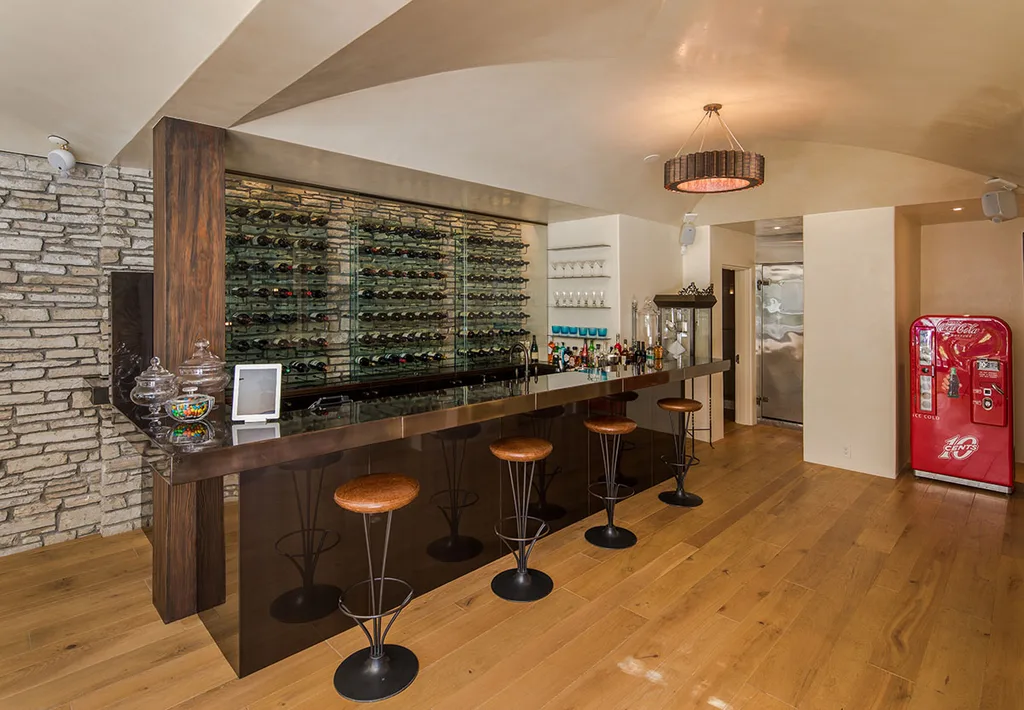 The couple started a three-year renovation immediately after purchasing the property. The scope of works included replacing the kitchen floor with heated marble, designing and installing a pub with floors sourced from a 200-year-old French château and adding a private screening room. They also built a tennis court and pavilion with guest house on the upper level.