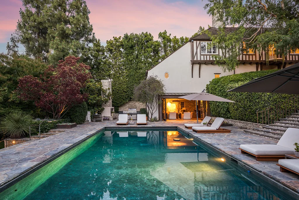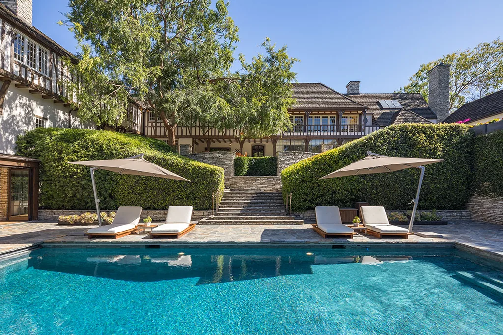 The French Normandy Revival-style estate was originally built in 1934 for actor Fredric March and in its day was one of the first movie star mansions in Beverly Hills.