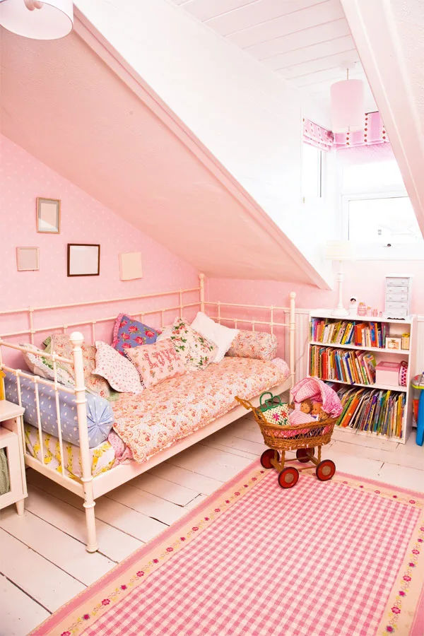 Cool kidsContrary to popular belief, our children don’t need everything to be bright, new and shiny. Here, a vintage day bed has been revived with a lick of paint and popped into a little girl’s room where it’s both decorative and functional.