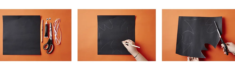 Cut out the bat and snip a little hole in its tail for the ribbon.