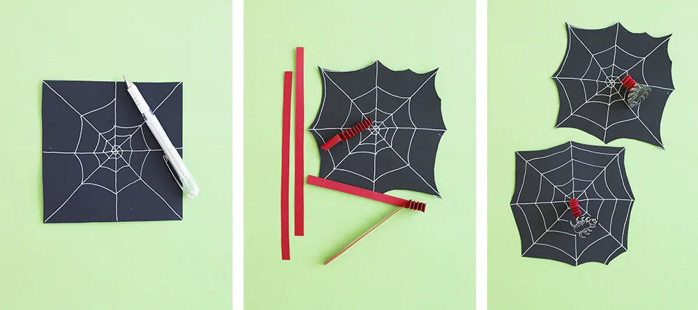 Trace the spider onto a small piece of black cardboard with the white pen. Cut around the spider.