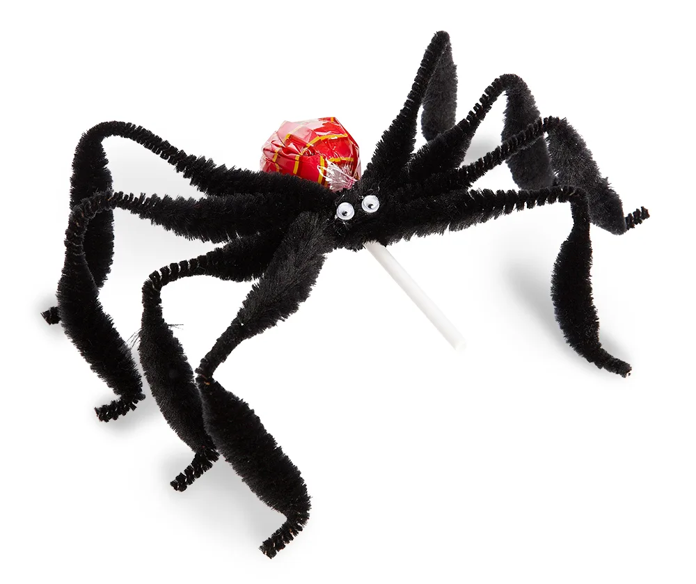 Simple yet effective – twist black pipe cleaners around lollipops and add some plastic craft eyes to make your very own furry spiders that you can dangle at your guests!