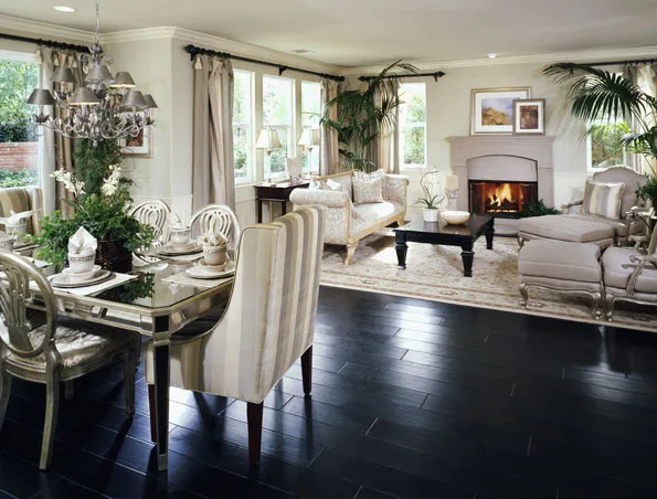 We have a long and narrow combined living and dining room which looks nice but sometimes has a bit of a gymnasium feel to it. We don’t want to put in a dividing wall but there must be some other ways of making it less “large”.