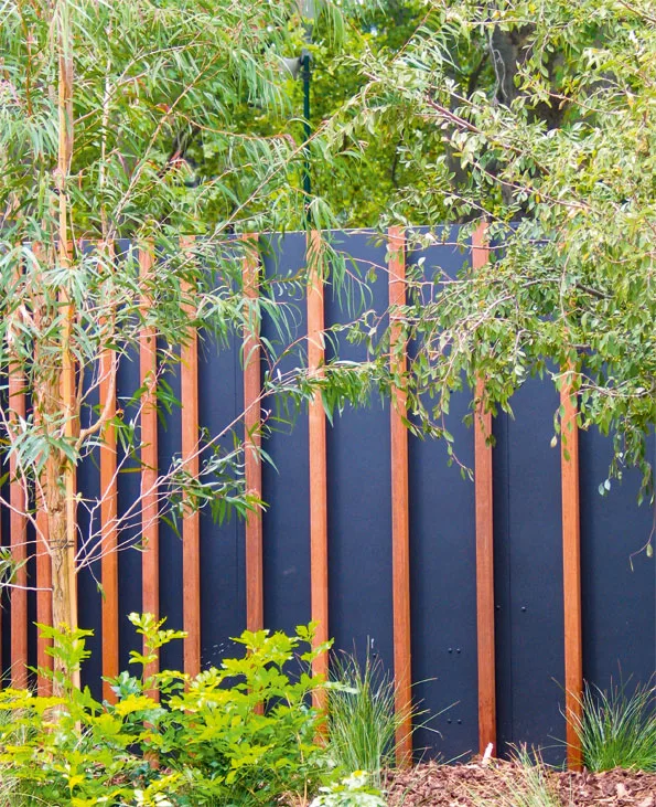 The fence (above right) was once a pretty awful fibro number, painted charcoal in an attempt to camouflage its worst points. The turning point was a bundle of garden stakes, nailed on. The result? Instant style. Any bits of treated timber will do and you can mix and match lengths and widths for a random look. We used the slats off a derelict futon for a similar job, and they looked better than they ever did on the bed.