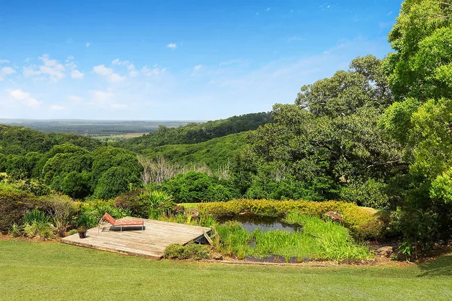 Located 40 minutes from Byron Bay and adjoining the Victoria Park Nature Reserve National Park, the extensive property boasts panoramic views, a rainforest with a natural waterfall, two dams, as well as creak running through it and a pond with its own dock. Newton-John has bolstered the landscape by planting 5,000 additional trees over the years