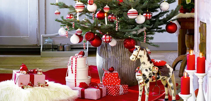 The smart way of keeping the whole family happy at Christmas is to go with a typical red and white theme when it comes to your decorating. Rustic styles are popular this season and can be tied in with this colour scheme.