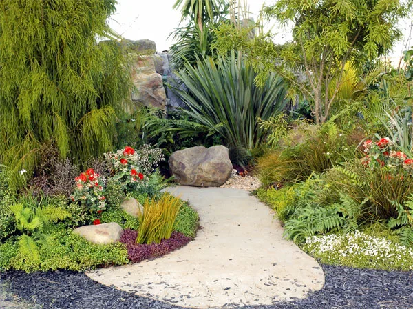 Taller, upright growing plants for medium shade include native hen and chicken fern, renga lily and dianella.