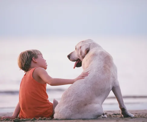 With the dog owner’s okay, tell your child to hold out the back of their hand for the dog to sniff – dogs are happier if they can approach us. Don’t rush up to a dog and never stand over them. Then pat the dog – under the chin or on the chest are the best spots, as this isn’t intimidating for the dog.