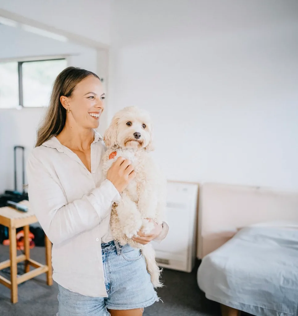 “There was a lot of discussion about what flavour of dog. I was reading things like, ‘Sheds a million hairs’, ‘This is a digging and jumping dog.’ I was nervous,” she admits. “I felt I had enough going on with the cat, kids, myself, the hubby, goldfish…”