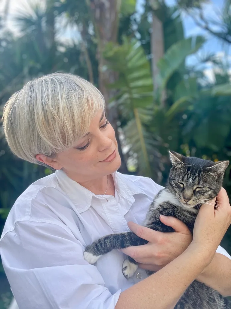 Wilhelmina has been cat-obsessed since she was a little girl. “I had my first cat – Swizzle – when I was three years old,” she recalls. “After she passed, my mum bought me the cutest little black and white kitten for my seventh birthday. She told me to close my eyes and hold out my hands, so I opened my arms wide, hoping for a huge gift, but she cupped my hands together and placed the tiniest fur ball in them.”
