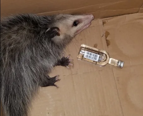 The possum, who was completely wasted, was taken in to the Emerald Coast Wildlife Refuge by a police officer after a liquor store employee found her next to a broken and empty bourbon bottle.