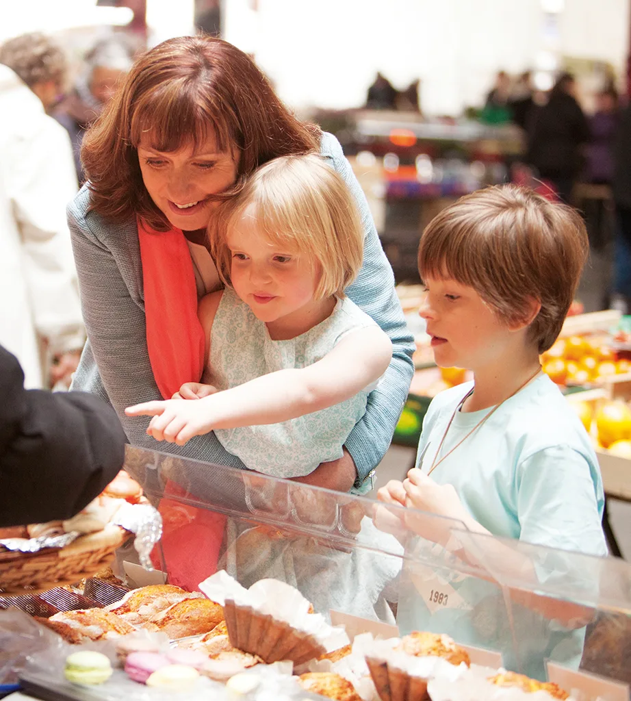 Allyson, Olive-Rose and Jean-Luc in a market in France 2013.
