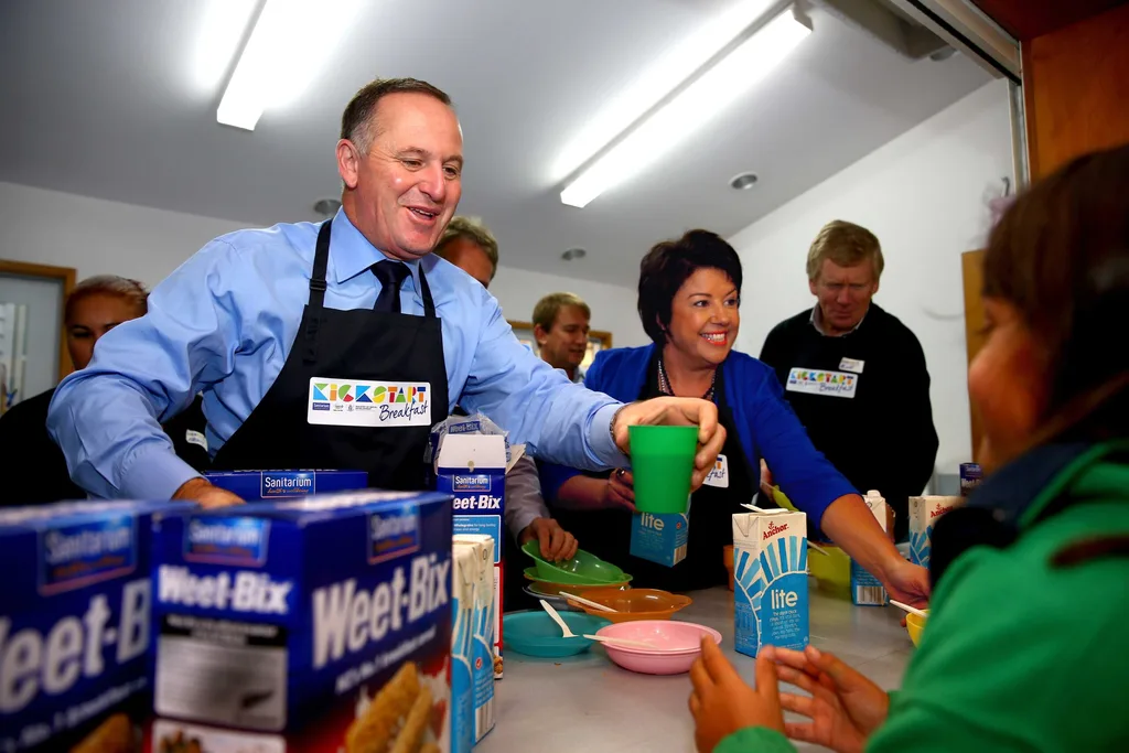 With former Prime Minister John Key, serving breakfast to school children in West Auckland.