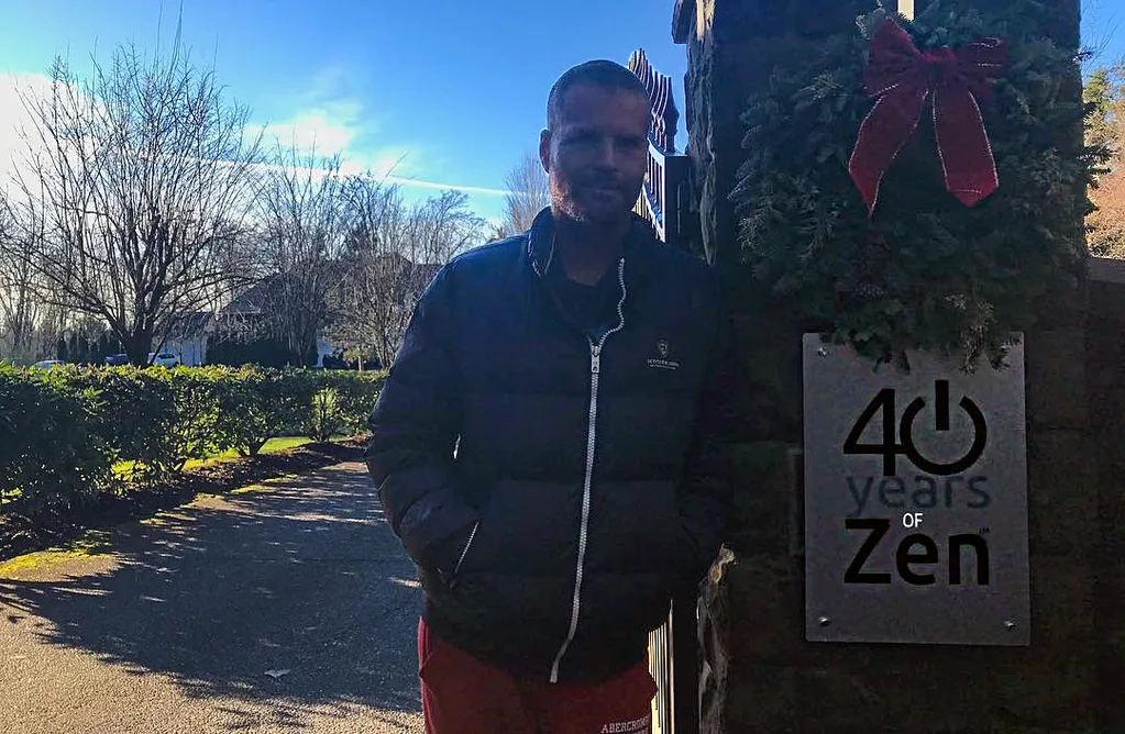 Pete Evans poses outside the 40 Years of Zen Training Center in Washington.