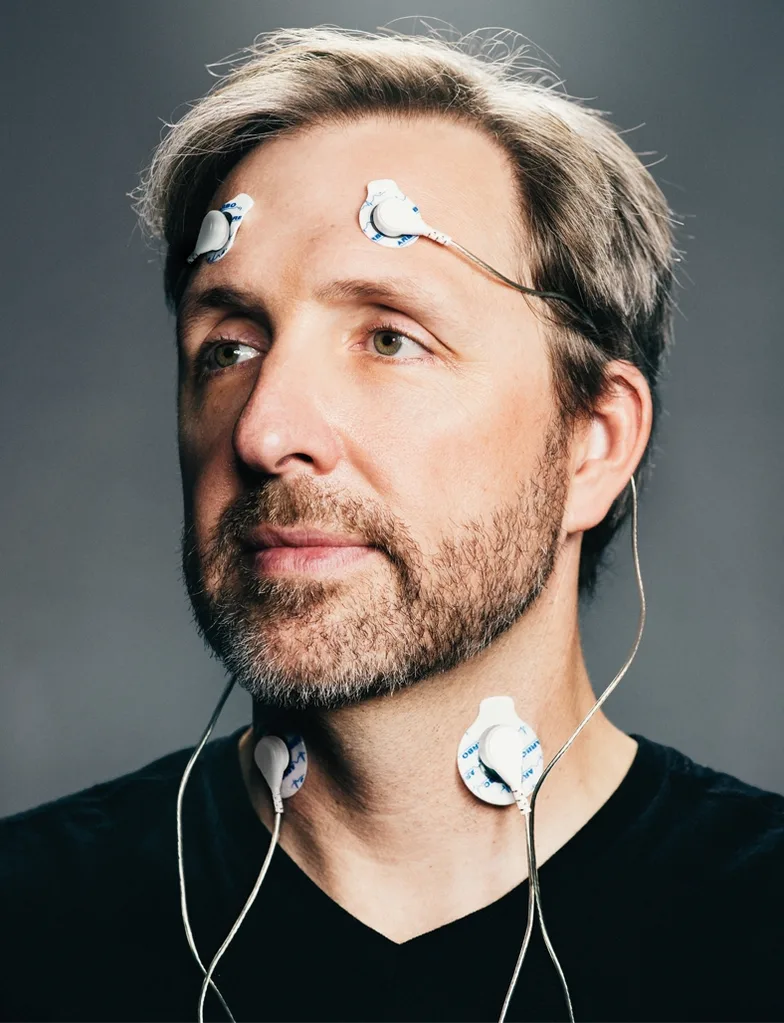 40 Years of Zen founder Dave Asprey with his custom brain mapping equipment.