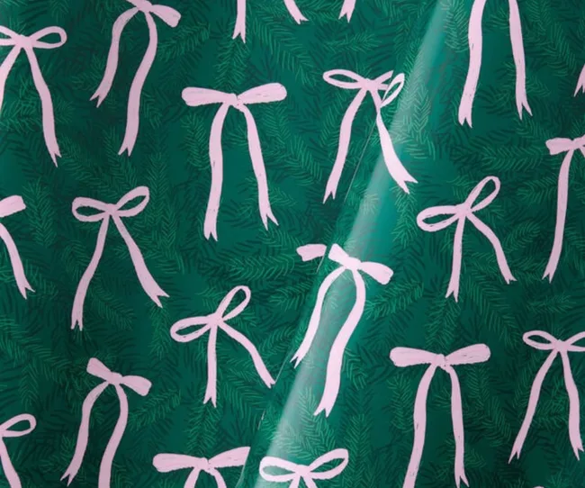 Green & Pink Bow Wrapping Paper Roll