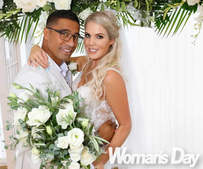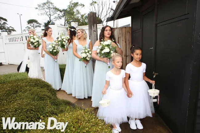 But as the guests trickle in and bride Lizz Sadler prepares to make her entrance, miraculously the skies clear and the bunch of white umbrellas Woman’s Day has brought along are suddenly redundant.
