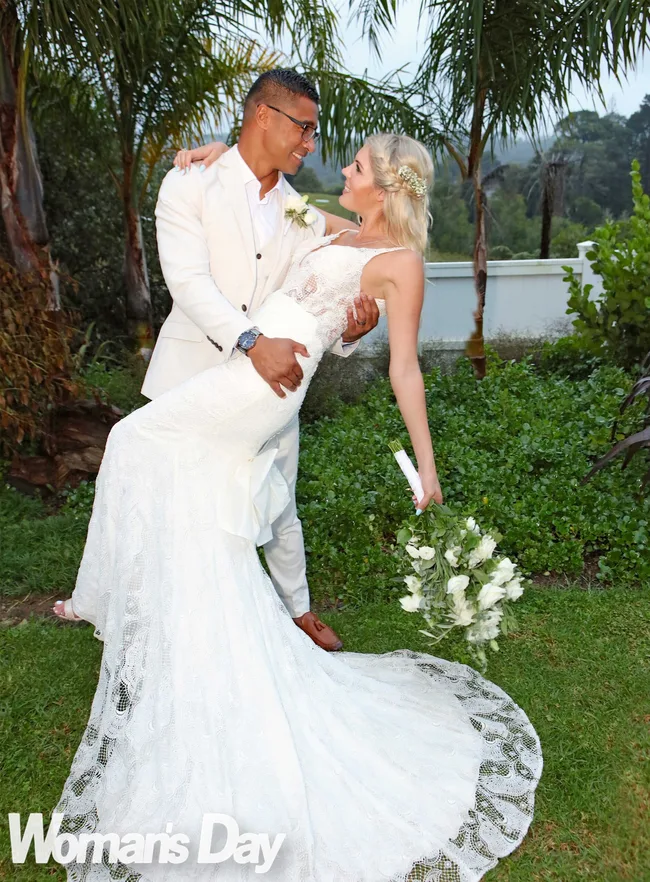 Then – while guests tuck into their mains of scotch fillet, Akaroa salmon or kawakawa chicken – the groom pays tribute to his bride in an emotional speech, declaring, “We’ve been through hell and back, but we’ve survived purely because of love. A lot of people have asked how we could get engaged after less than a year, but for both of us, it was an instant connection. I was never able to deny it and I was always going to be here for you, baby, through thick and thin.