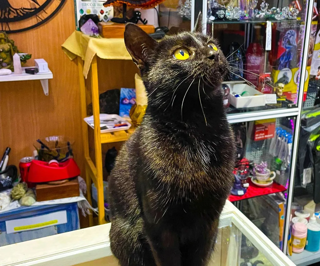 Marita offers both palmistry and tarot readings, with Shiloh attending nearly every session to provide nuzzles and smooth the way for customers to connect with their spiritual side. If Shiloh climbs onto your lap, you know you’ve struck it lucky. Given some are superstitious about black cats, Shiloh might have expected some pushback, but she’s never encountered anyone who didn’t want her taking part in their reading. Customers love her and many reviews mention her by name.
