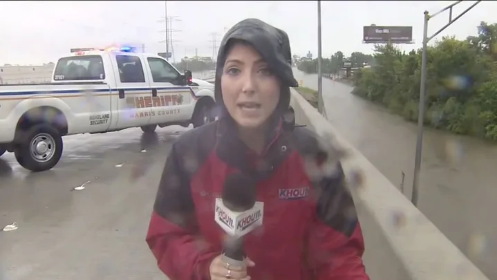 TV journalist Brandi Smith was reporting live from the side of the road in Houston when she spotted a man in a truck surrounded by water with its cab quickly filling up.