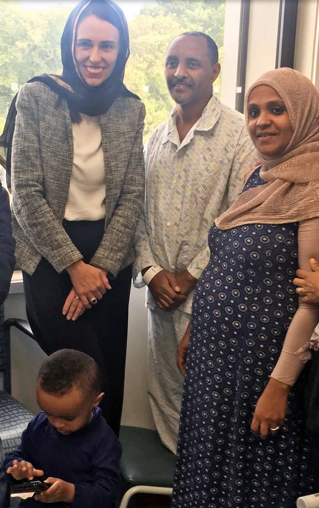 Prime Minister Jacinda Ardern visits the couple at Christchurch Hospital two weeks after the attack.