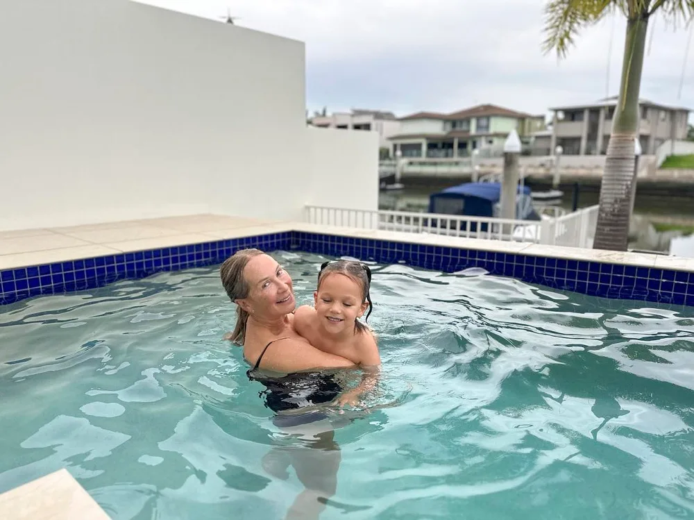 “Being Nana is a whole new experience for me and it’s wonderful,” she says proudly. “Auggie is a very active child who comes over with a little electric motorbike, and adores swimming in the pool and practising what he’s learned at swimming lessons.