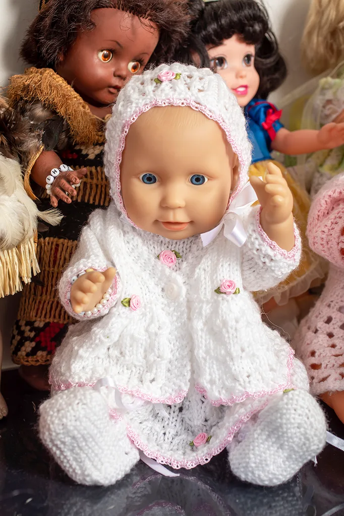 Now Edith’s collection includes everything from antiquated porcelain creations to modern-day animatronics and the odd crochet doll she has made herself (“I’ve got a very cheeky one with pink hair in a pink bikini!”).