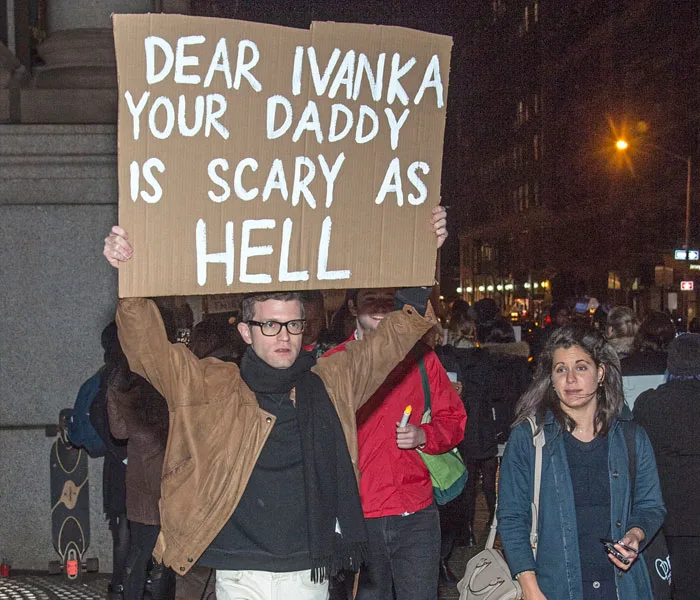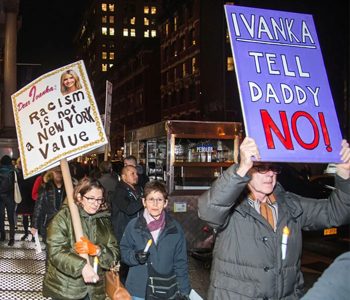 “Dear Ivanka” protesters outside her apartment in New York.