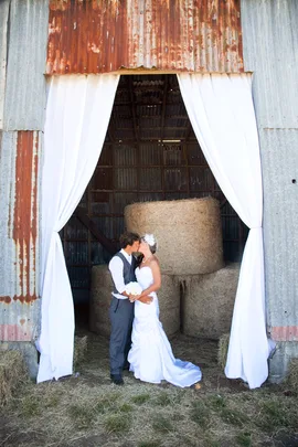 Planning got underway immediate. “The wedding was on my parent’s farm in Mangatoki,” Nicola says. “On the day, I got ready at the family home on the farm and Blair got ready at his parents in Stratford. All the guests parked in the paddock by the road, then got transported by tractor and trailer to the barn, where we had a marquee up and hay bales set out for them to sit on.