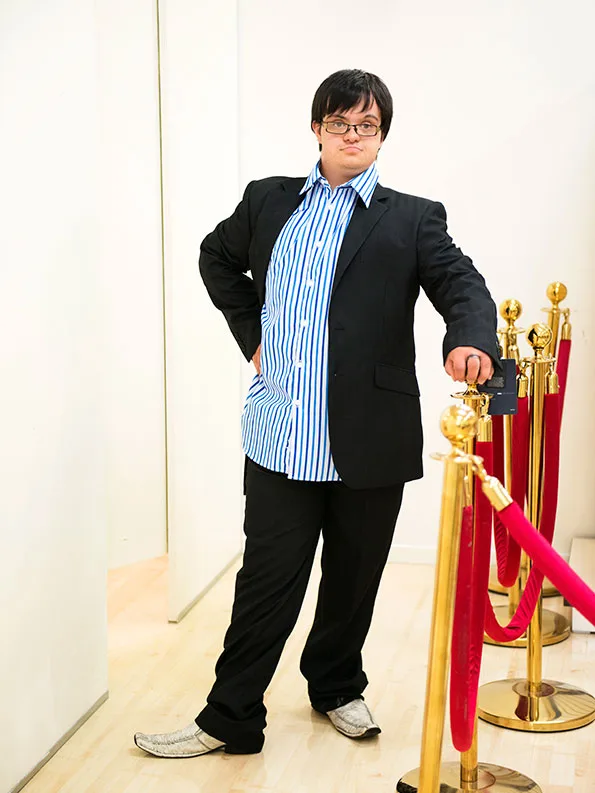 Because people with Down Syndrome are often short in stature but quite broad, they can have trouble finding garments to fit.