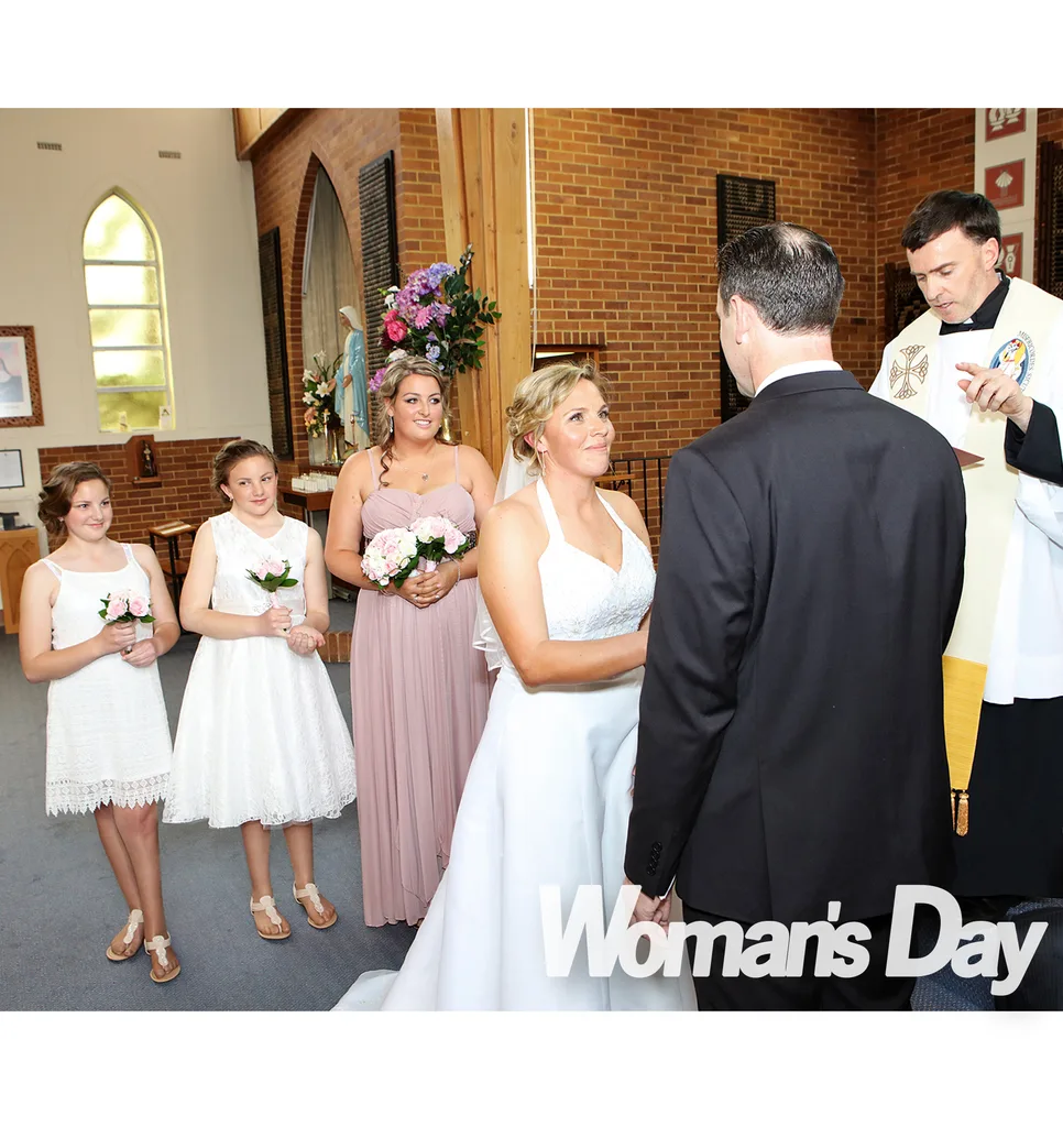 Taking deep breaths to keep calm amid the excitement, Melissa and Callan are clearly ecstatic at pulling off their surprise wedding, grinning as they lock eyes at the altar. But it’s the smiles on their daughters’ faces that are widest of all.