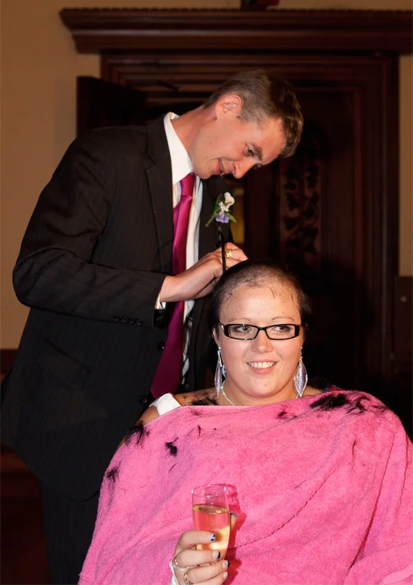 Never one to obsess about her looks, Laura didn’t have any qualms about losing her hair on her wedding day, although some guests raised their eyebrows.