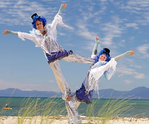 Growing up in the Coromandel, they aspired to make a living from their flexibility and, after high school, they enrolled in an acrobatics course in Auckland, where their passion grew. Nele explains, “There is always so much adrenaline when you learn something new – you get such a satisfaction from it.” After performing a few times for family and friends, they came up with the name the Twisty Twinz and did their first public gig at an open-mic night. Twenty-one years later, the name has stuck and the supple siblings are still performing.