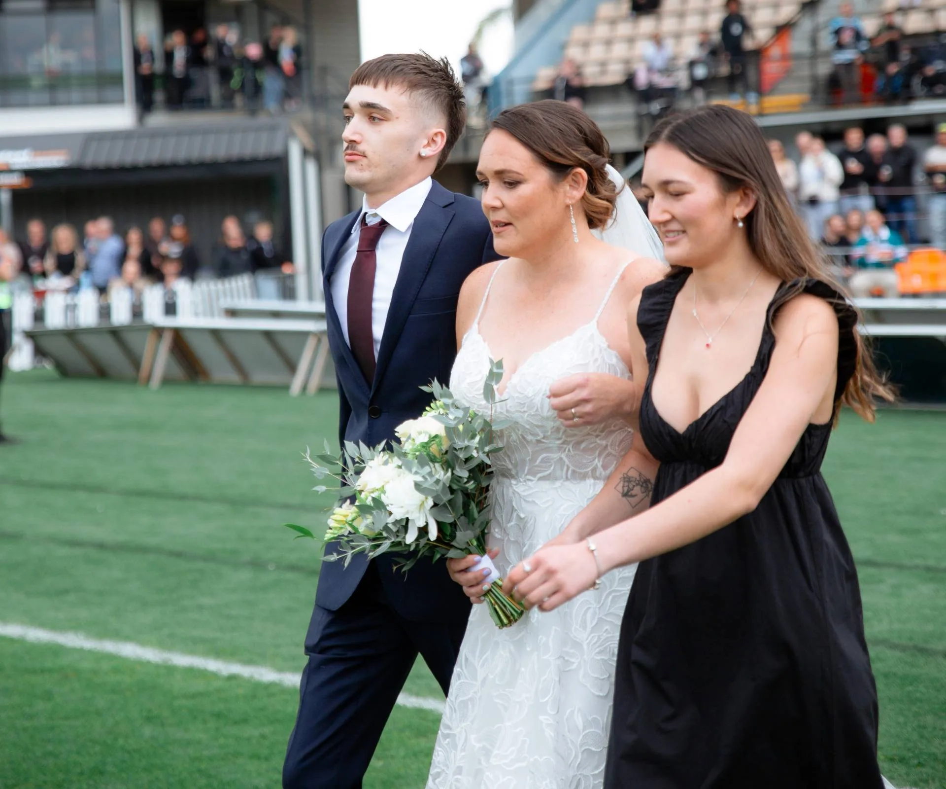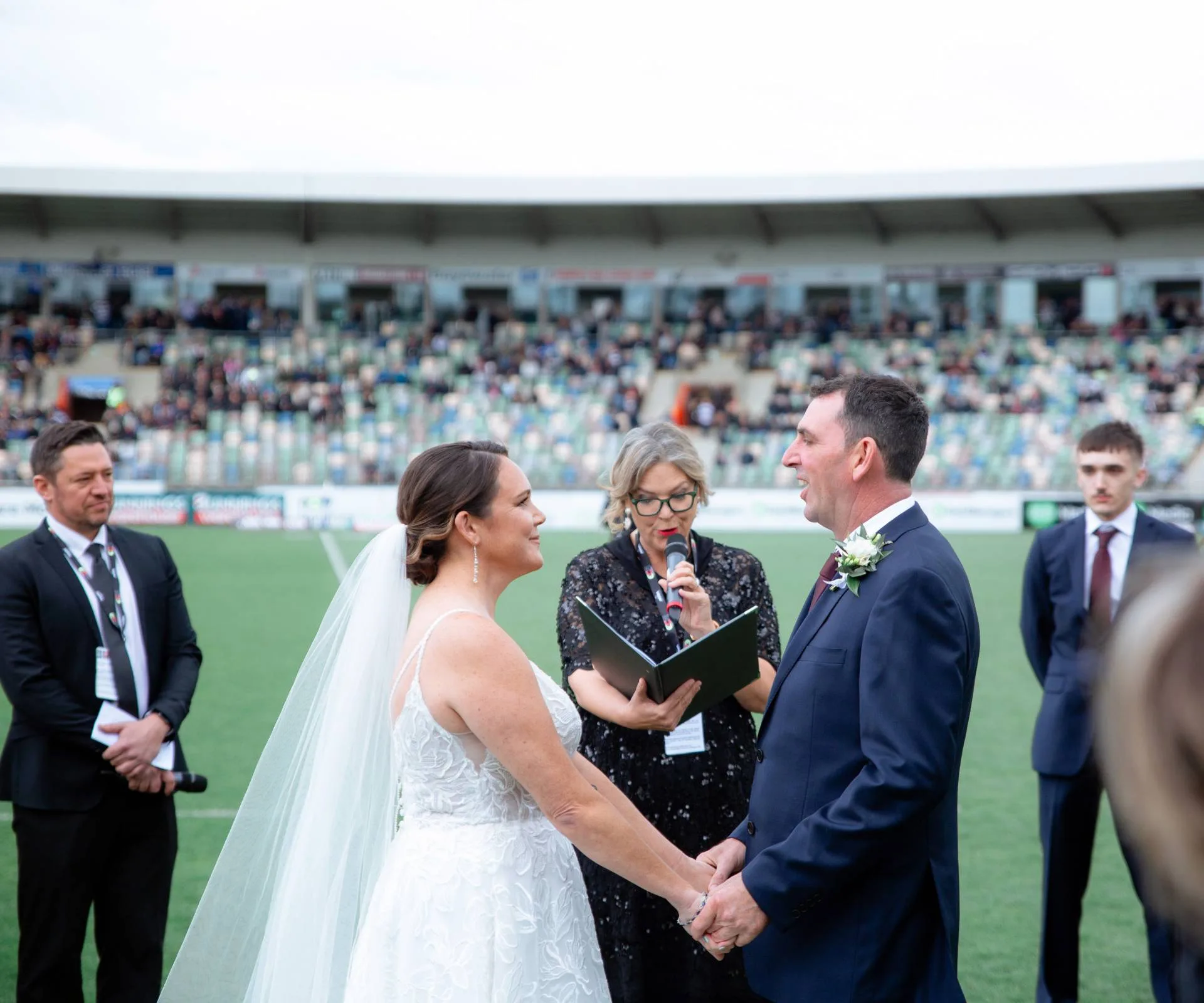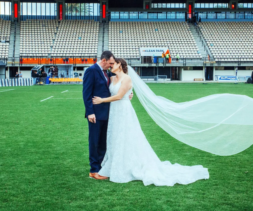 With the second half set to kick off, the couple’s wedding was quickly wrapped up, followed by a reception at McLean Park. They have Te Ana’s friend to thank for winning them the competition, after she entered by sharing a quirky poem about the couple’s relationship.