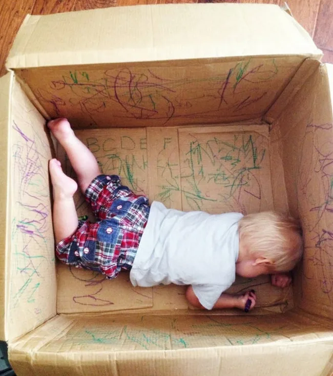 Likewise, a cardboard box is a great way to confine your little artist to drawing – so they don’t ruin the wallpaper.