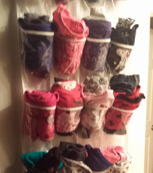 One of our faves – using a shoerack on the back of a door to plan out outfits for the week. Such a good time saver.