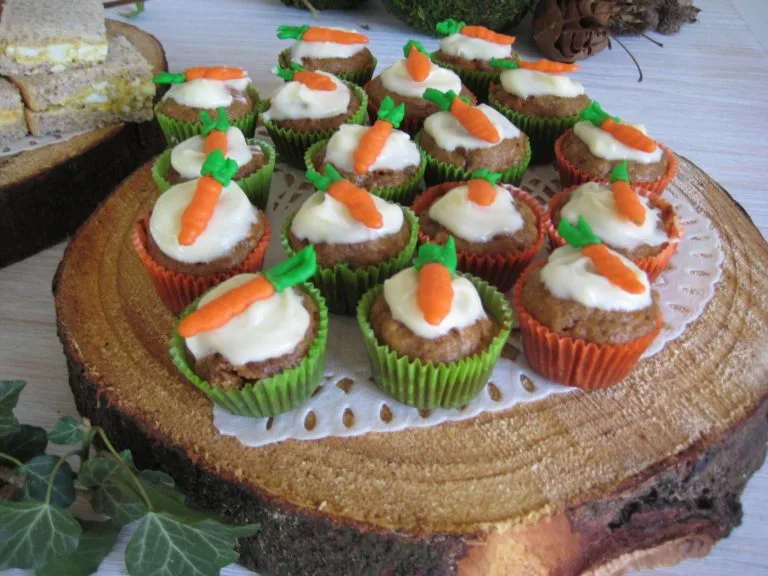 We made delicious mini carrot cupcakes and topped them with cute homemade little icing carrots