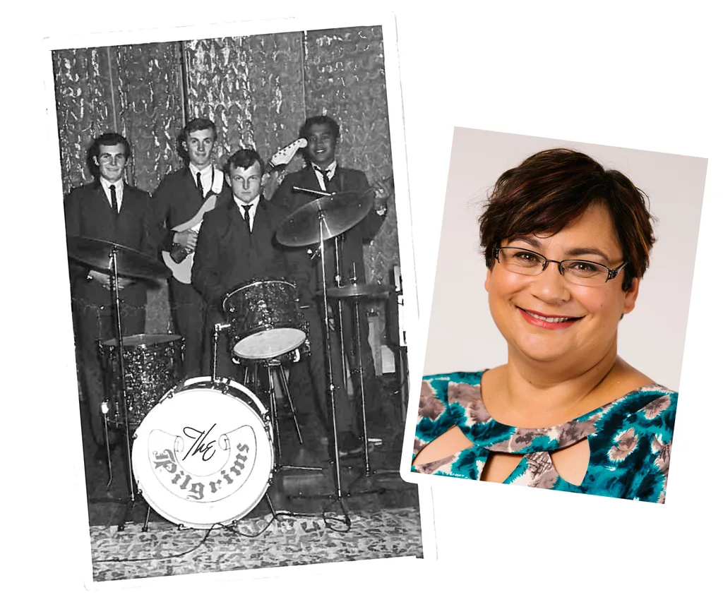 Dad is pictured with a band he used to play with, the Pilgrims; he’s the beautiful Maori guy with the Colgate smile and the unbuttoned, slightly ill-fitting shirt – I love that. Maybe it was his old school shirt, maybe he borrowed it from a mate. Either way, he knows he looks sharp. Classic Dad.