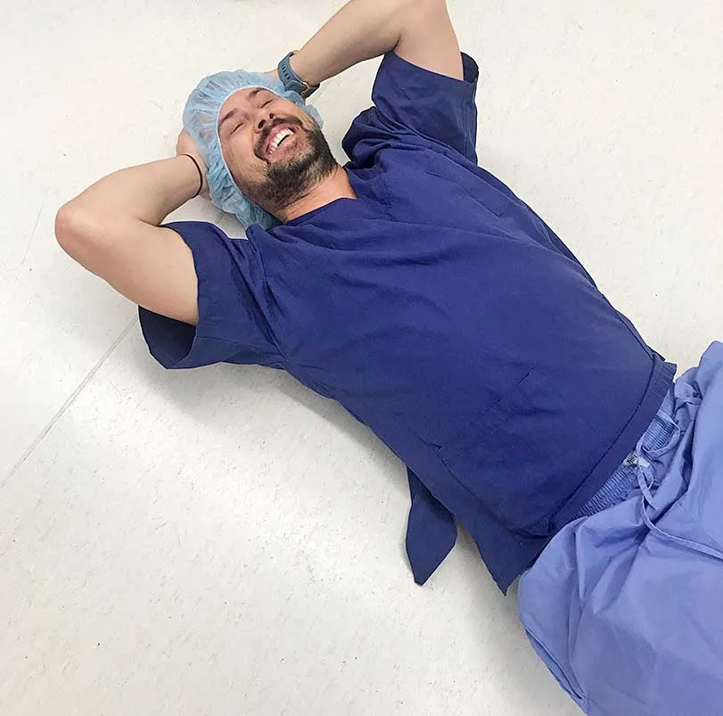 But Sam admits that he didn’t cope quite so well in the operating theatre. “After the first incision was made I suddenly realised I didn’t have any oxygen or food inside me, so I zombie-walked over to a nurse who caught me as I fainted!”