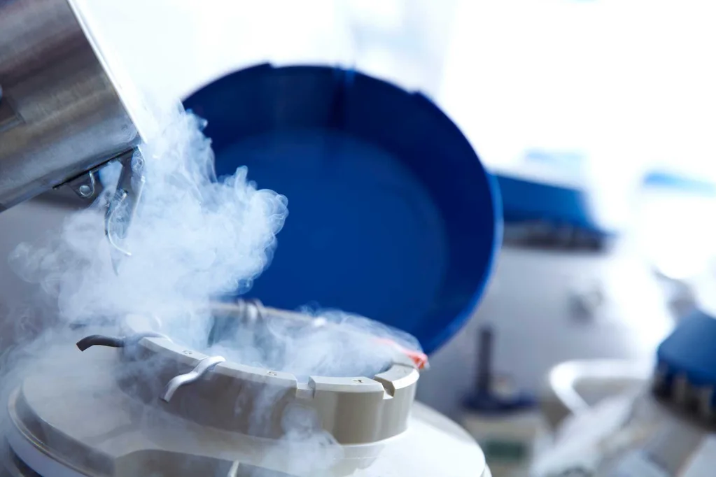 At Wellington’s Fertility Associates, a team of scientists are in the laboratory where eggs, embryos and sperm are stored. Under the vitrification process, eggs are snap-frozen in straws and stored in liquid nitrogen tanks at minus 196°C.