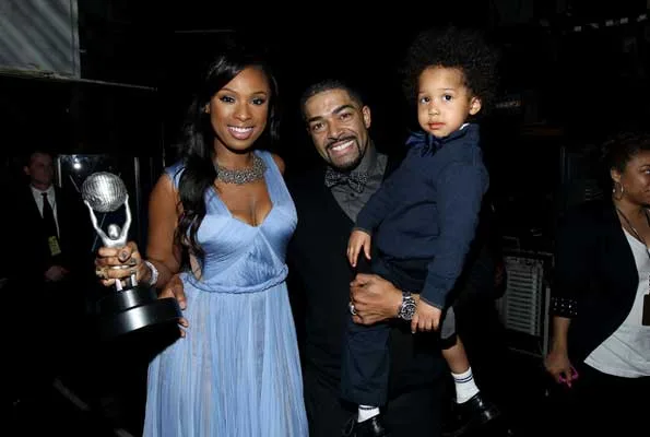 Jennifer Hudson, winner of the Outstanding Album award, David Otunga, and son David Daniel Otunga Jr. attend the 43rd NAACP Image Awards held at The Shrine Auditorium in February