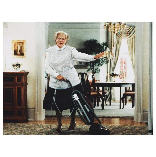 Made famous by the Robin Williams classic, the house has had a bit of a makeover since the early 1990’s, with a new kitchen added. But the traditional foyer is still in-tact, as is the classic window-lined staircase that featured int he film about a dad who poses as an elderly Scottish (female) nanny in an attempt to win back his family.